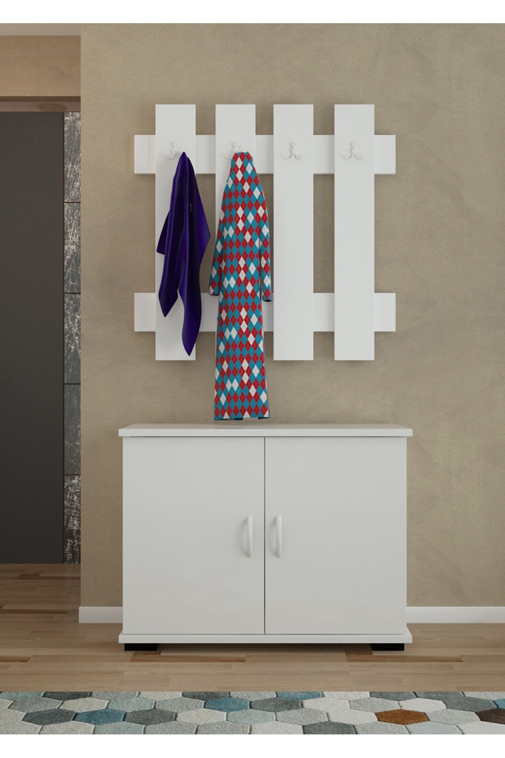 Fulya Portmanto Vestiyer Askılık Ayakkabılık Dolabı, Cordoba Beyaz