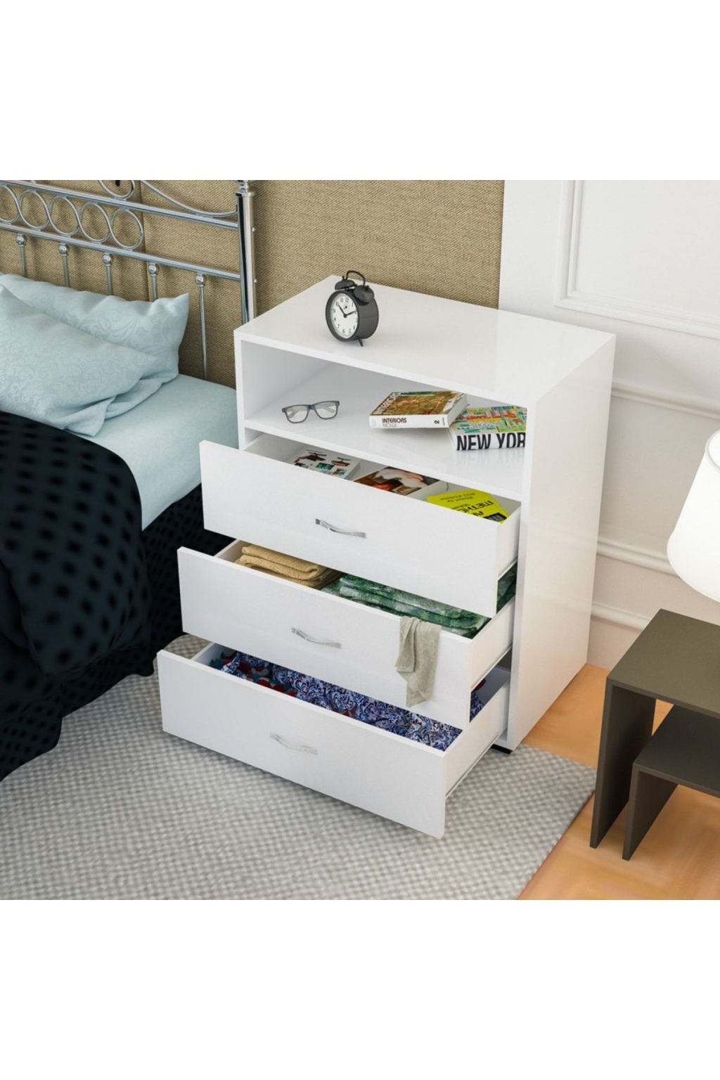 Şifonyer 3 Çekmeceli Tek Gözlü Dar Şifonyer Yatak Odası Şifonyeri