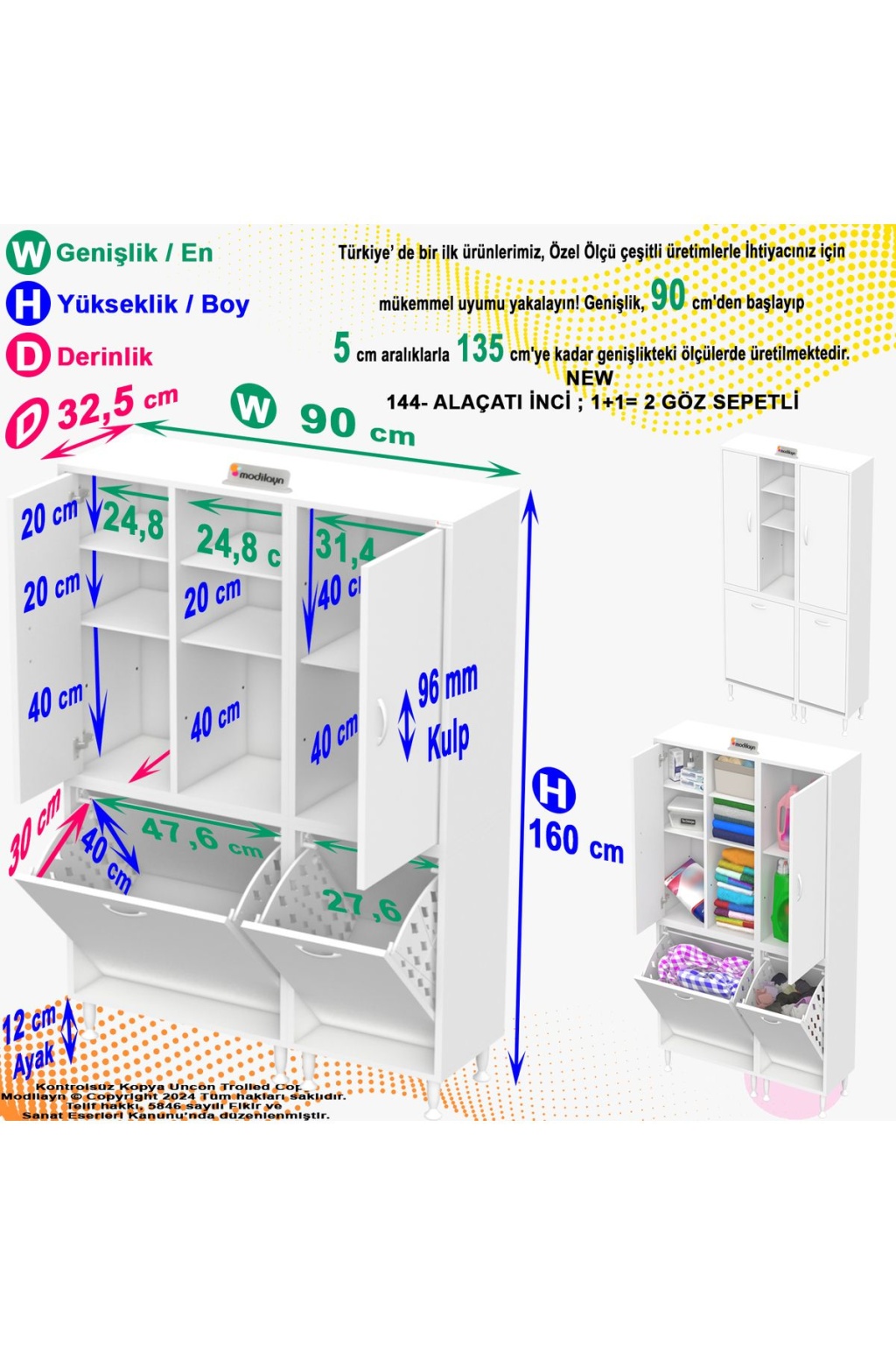 90 x 160 x 32 cm Banyo Dolabı Kirli Çamaşır Dolabı Sepetli Dolap
