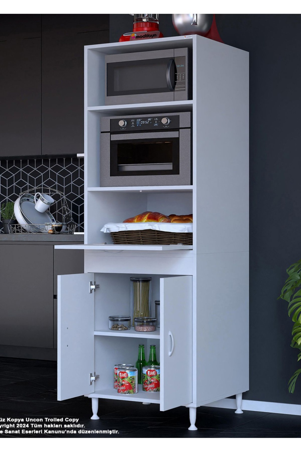 Silva Loya 2 Kapaklı 59,6 x 194,6 x 56 cm Mini Fırın Mikrodalga Dolabı Çok Amaçlı Mutfak Dolabı
