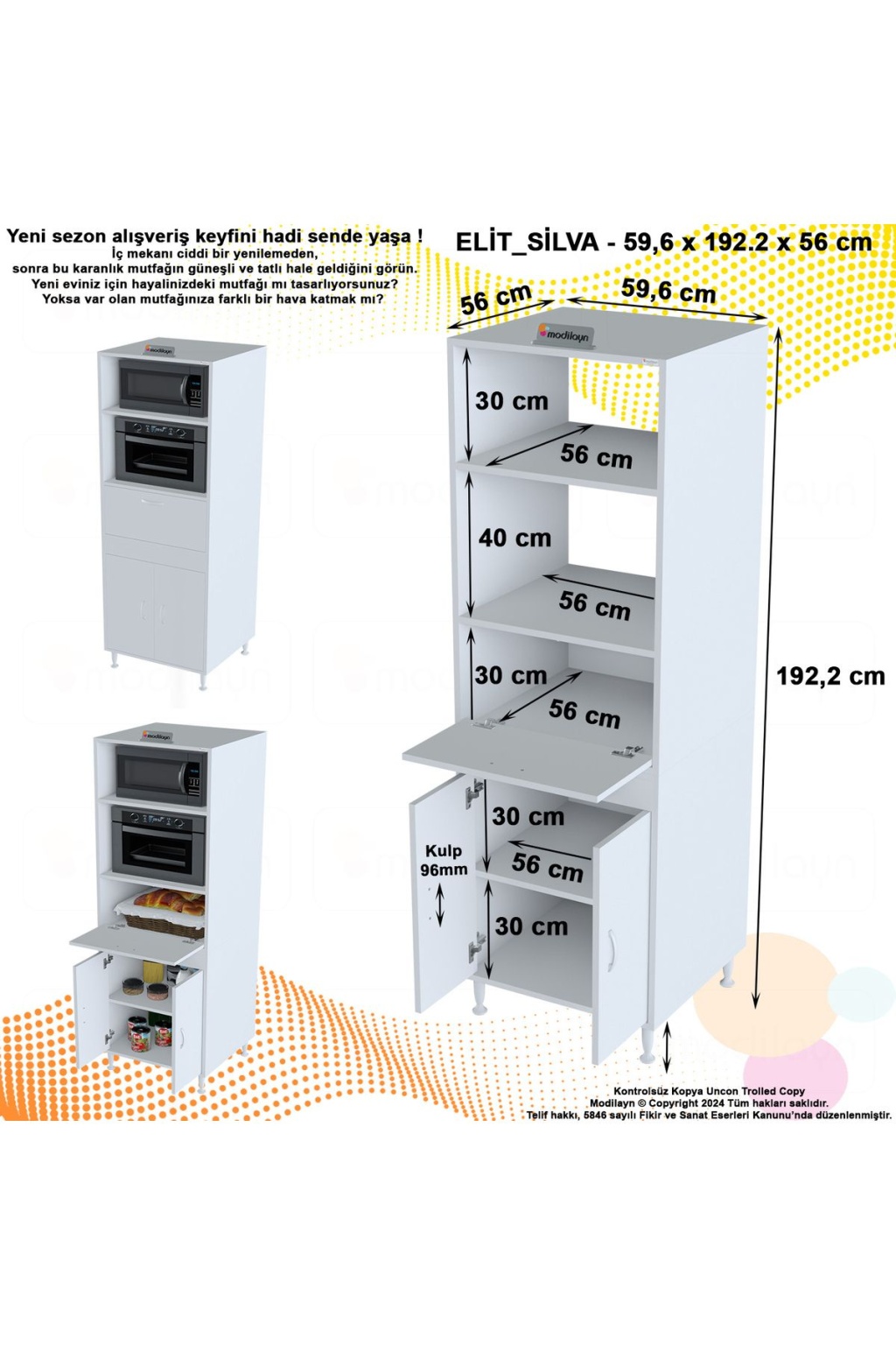 Elit Silva 2 Kapaklı 59,6 x 192,2 x 56 cm Mini Fırın Mikrodalga Dolabı Çok Amaçlı Mutfak Dolabı