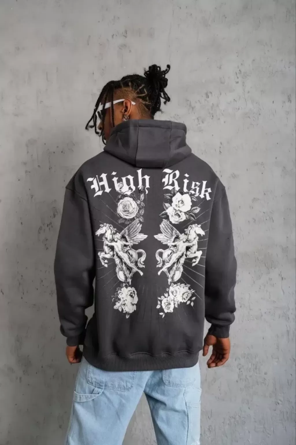 Erkek Baskılı Kapşonlu Sweat - Füme