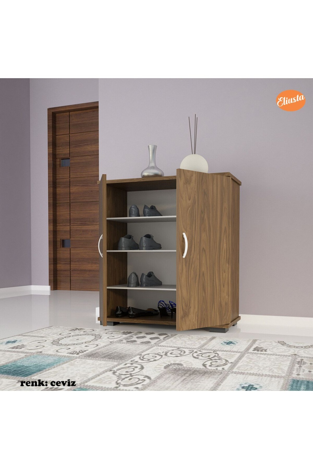 EU-112 Ayakkabılık Çok Amaçlı Dolap Antre Ayakkabılık 4 raflı Ayakkabı Dolabı - CEVİZ