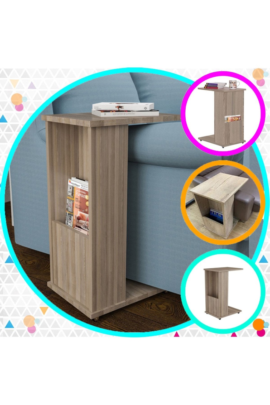 Tekerlekli Mdf C Yan Sehpa Koltuk Yanı Sehpa Salon Sehpa Ofis Sehpa Laptop Sehpası