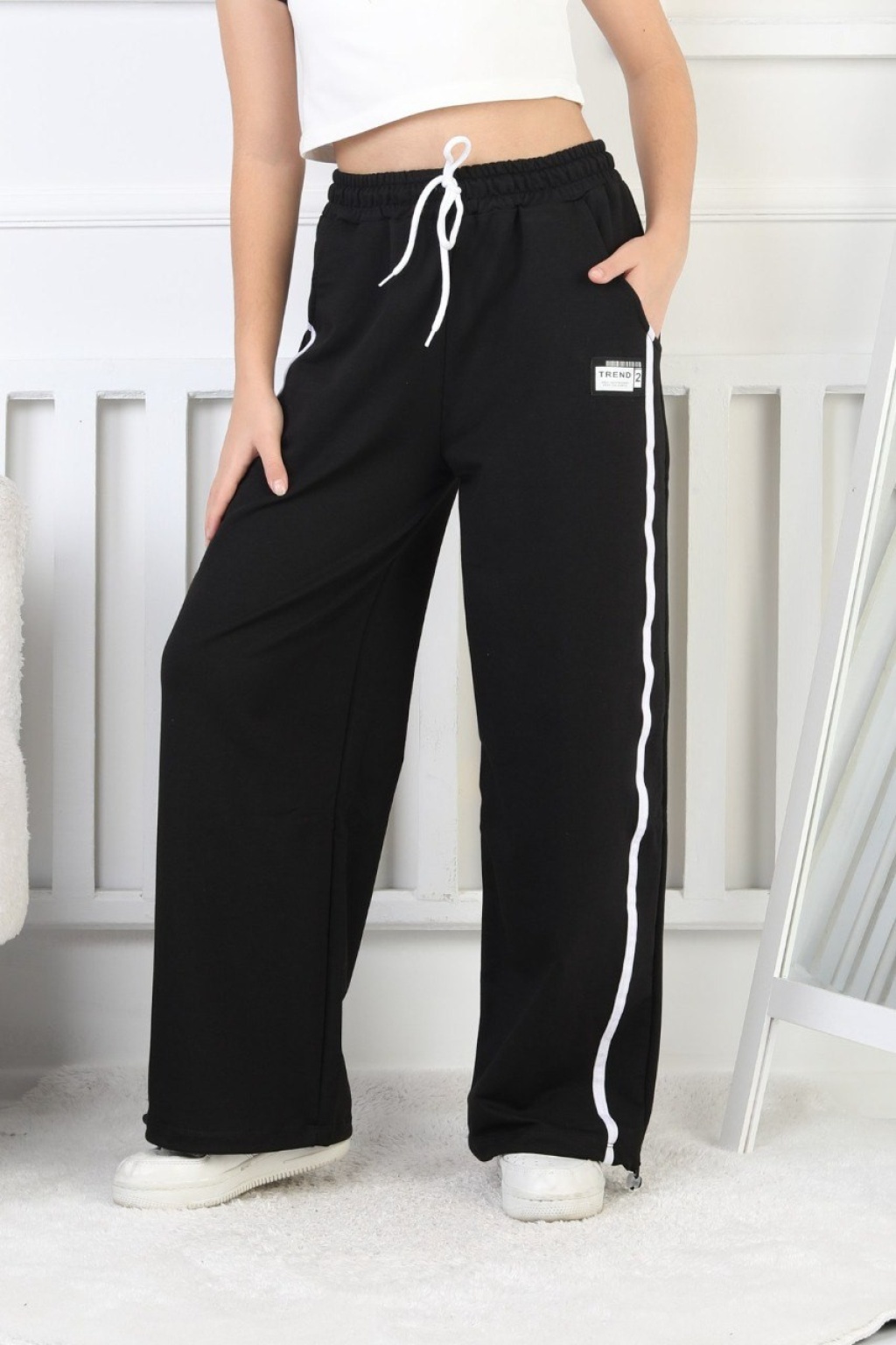 İki İplik Çapraz Çizgili Kız Çocuk Eşofman Altı
