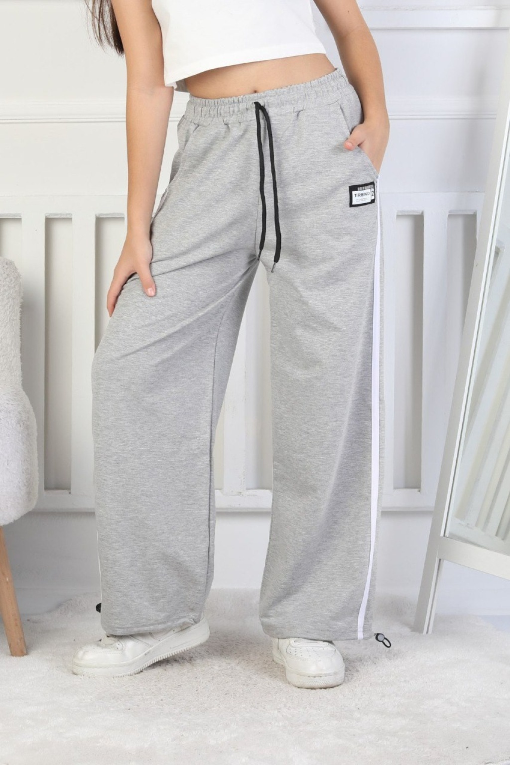 İki İplik Çapraz Çizgili Kız Çocuk Eşofman Altı