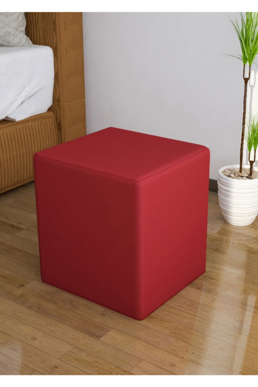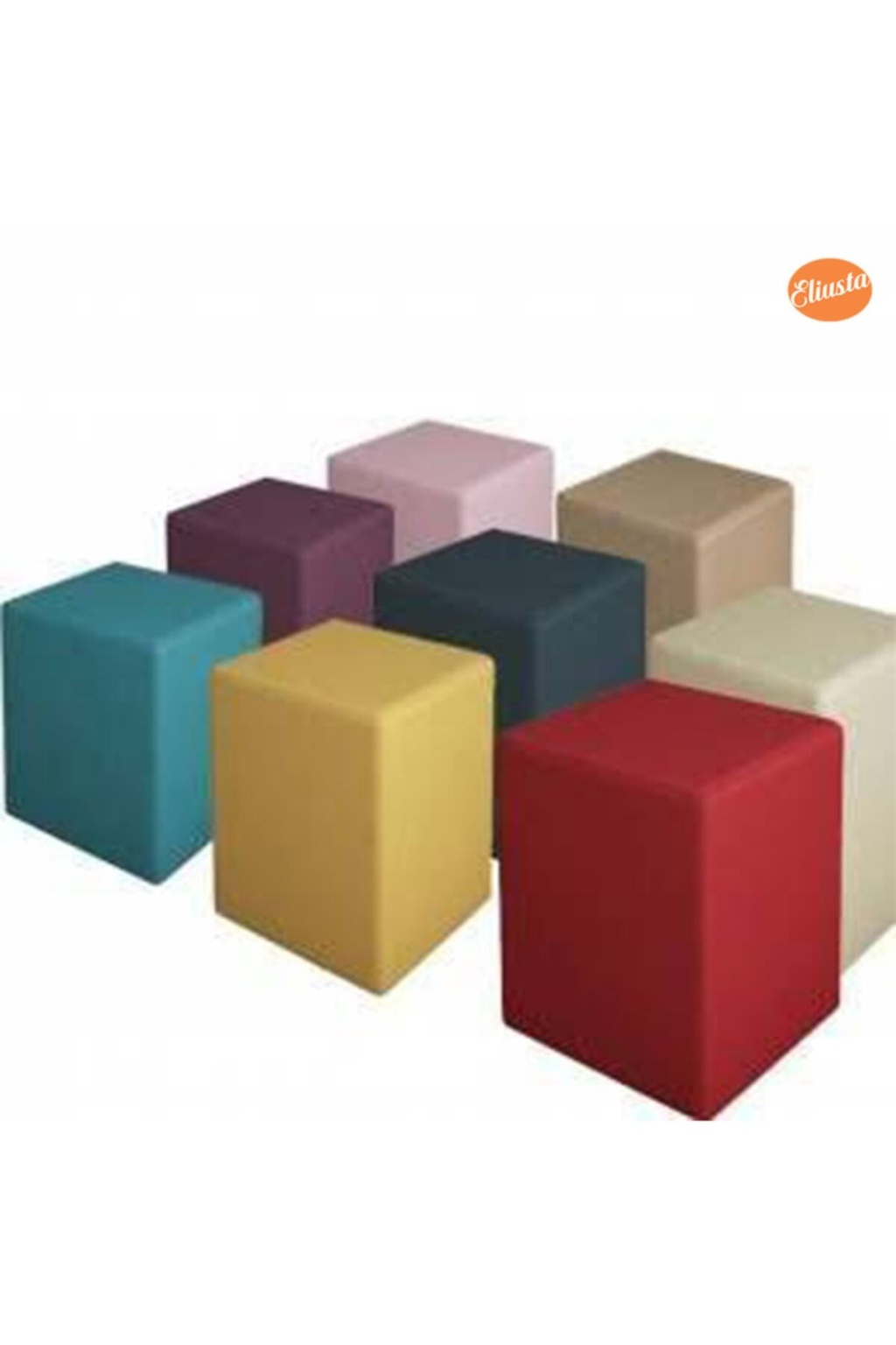 Kare Puf Tabure Ahsap İskeletli Kumas Tabure