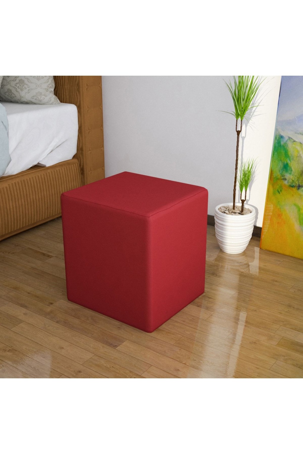 Kare Puf Tabure Ahsap İskeletli Kumas Tabure