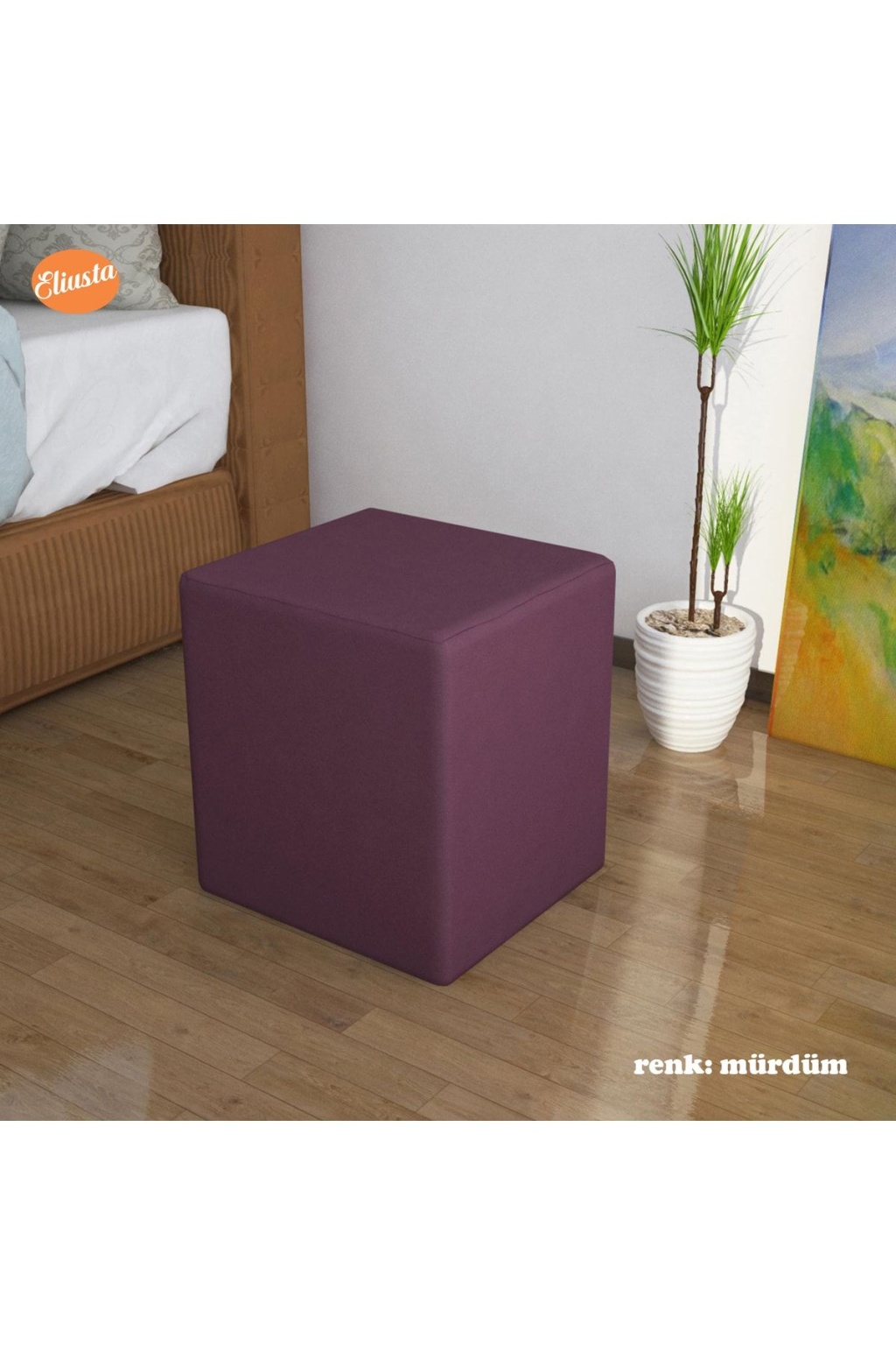 Kare Puf Tabure Ahsap İskeletli Kumas Tabure