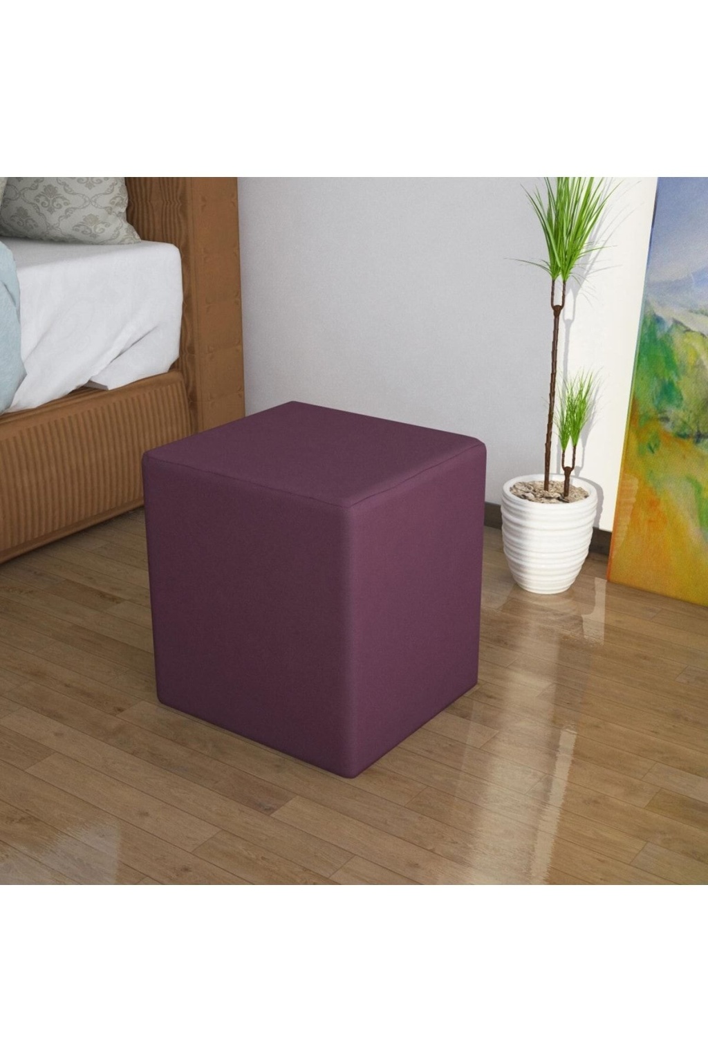 Kare Puf Ahşap Iskeletli