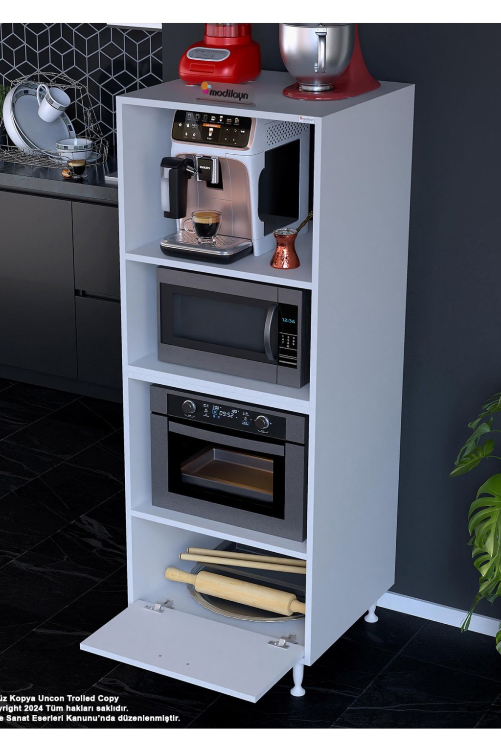 Loya Loya 1 Kapaklı 59,6 x 162,8 x 56 cm 4 Göz Bölmeli Mikrodalga Mini Fırın Dolabı Mutfak Dolabı