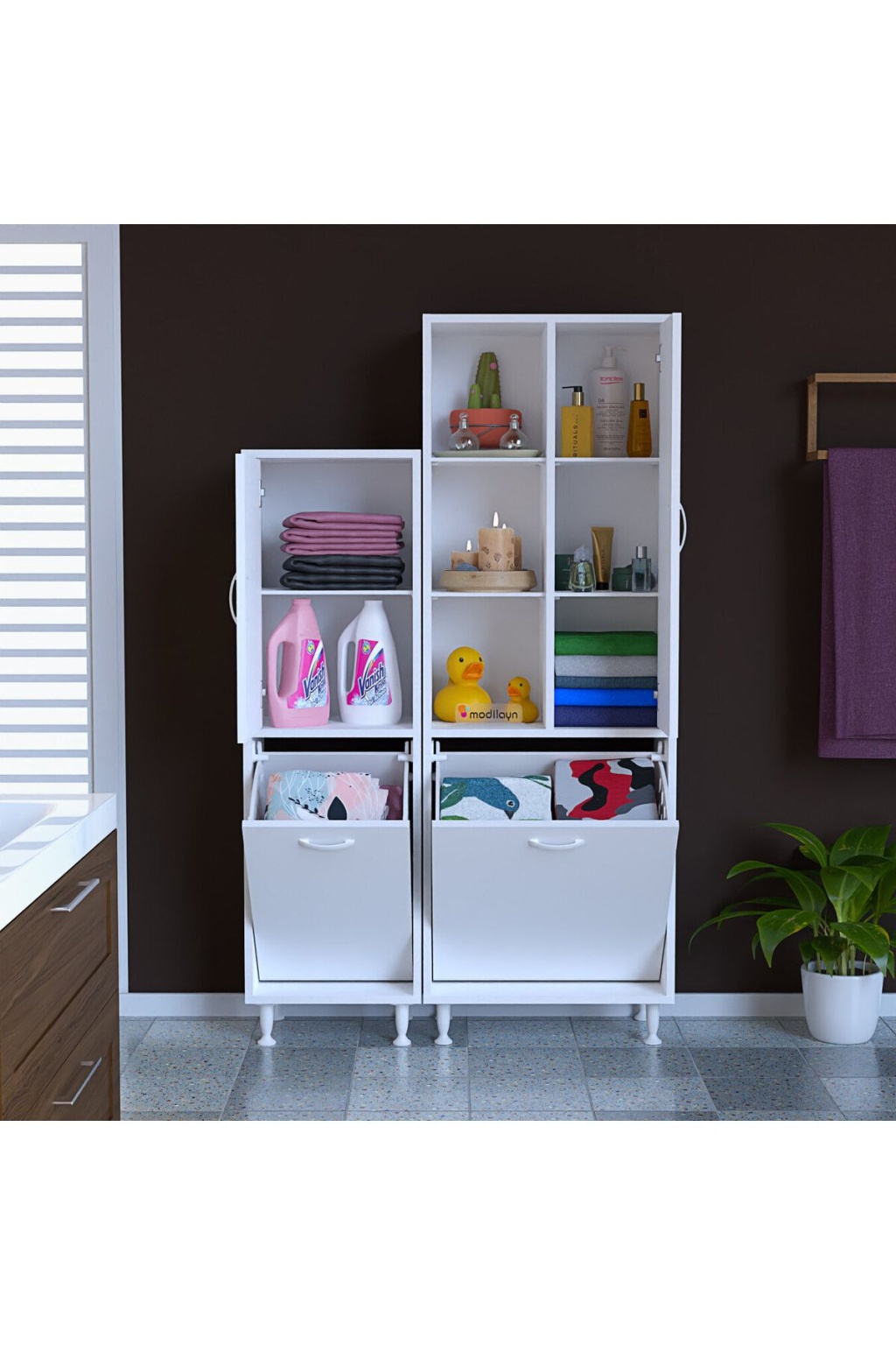 MODİLAYN ARD-133 İNCİ 2 Kapaklı Kirli Çamaşır Sepetli Banyo Dolabı Muftak Dolabı Çok Amaçlı Dolap