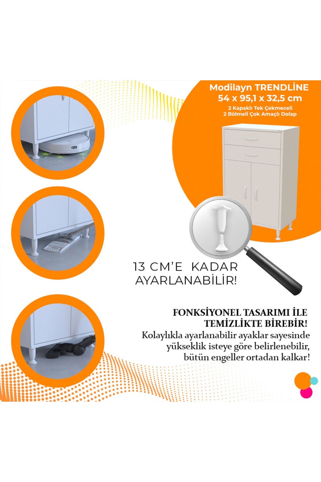 MODİLAYN 54 x 95,1 x 32 cm 2 Kapaklı 2 Çekmeceli 2 Bölmeli Çok Amaçlı Dolap Banyo Dolabı Ofis Dolabı