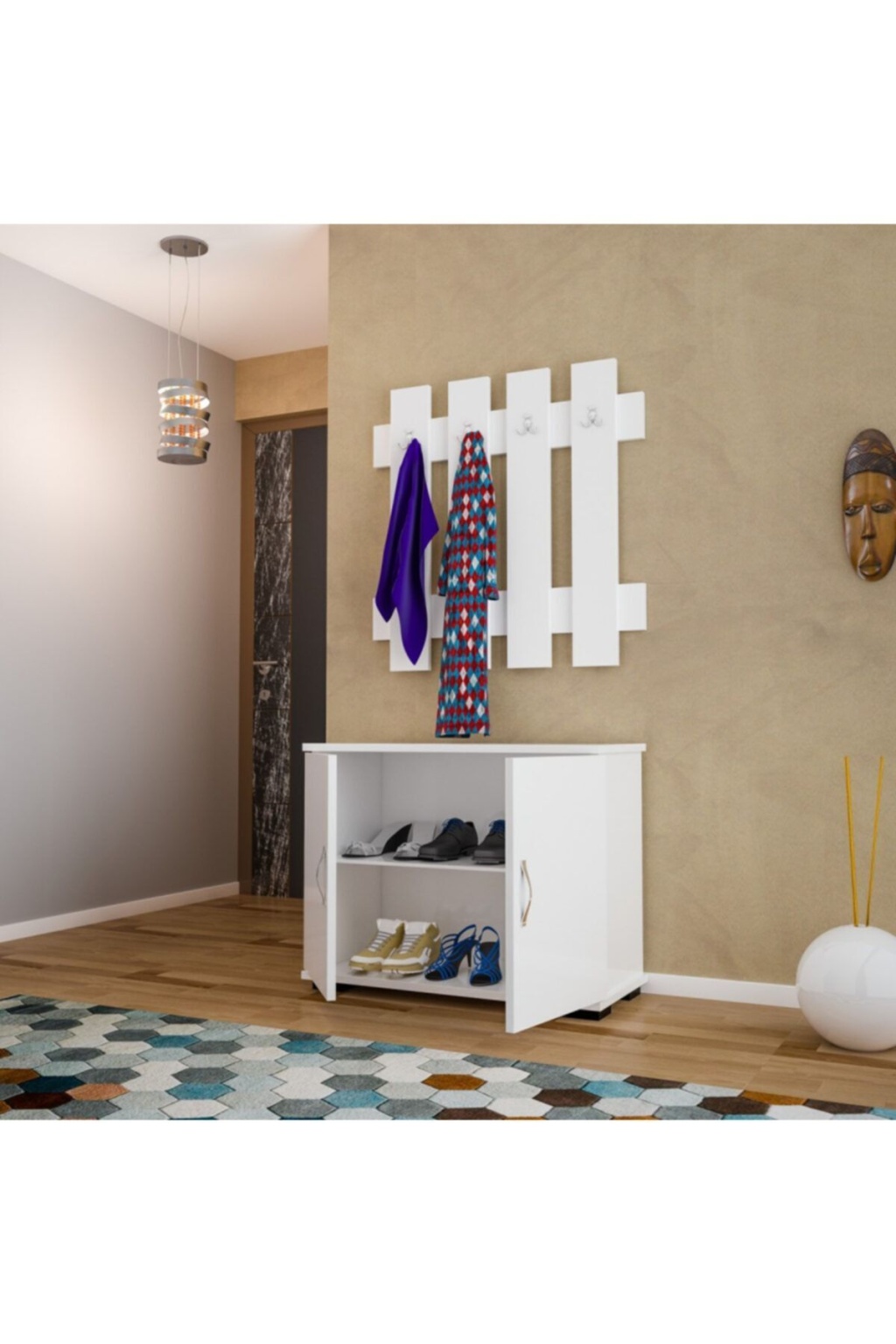 Fulya Portmanto Vestiyer Askılık Ayakkabılık Dolabı, Cordoba Beyaz