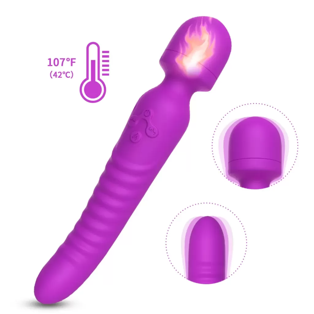 CHOBE Isıtmalı Çift Titreşim Motorlu Klitoris ve G Nokta Wand Orgazm Vibratör - Pembe