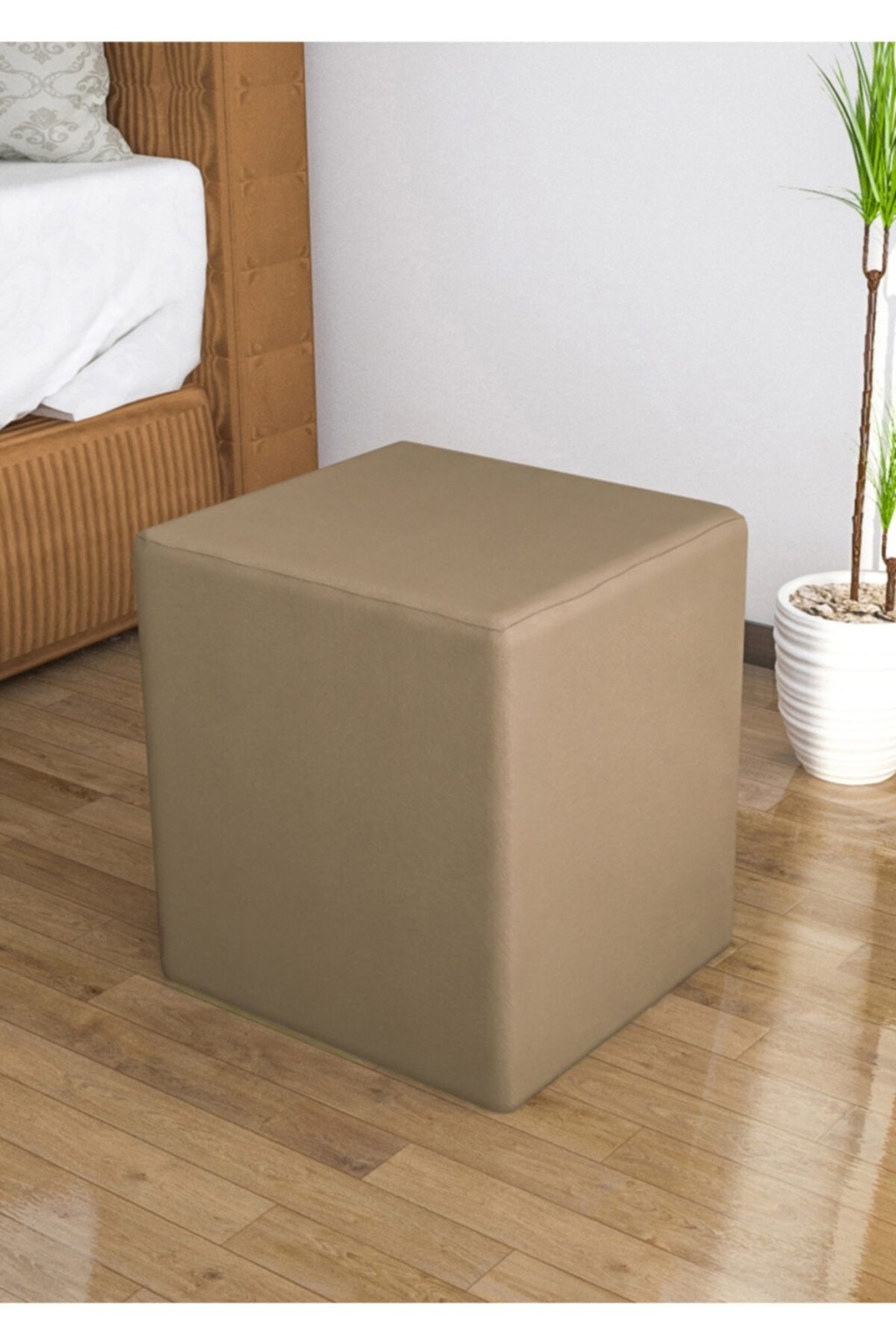Puf Kare Tabure Ahşap Iskeletli Kadifemsi Kumaşlı Tabure Şık