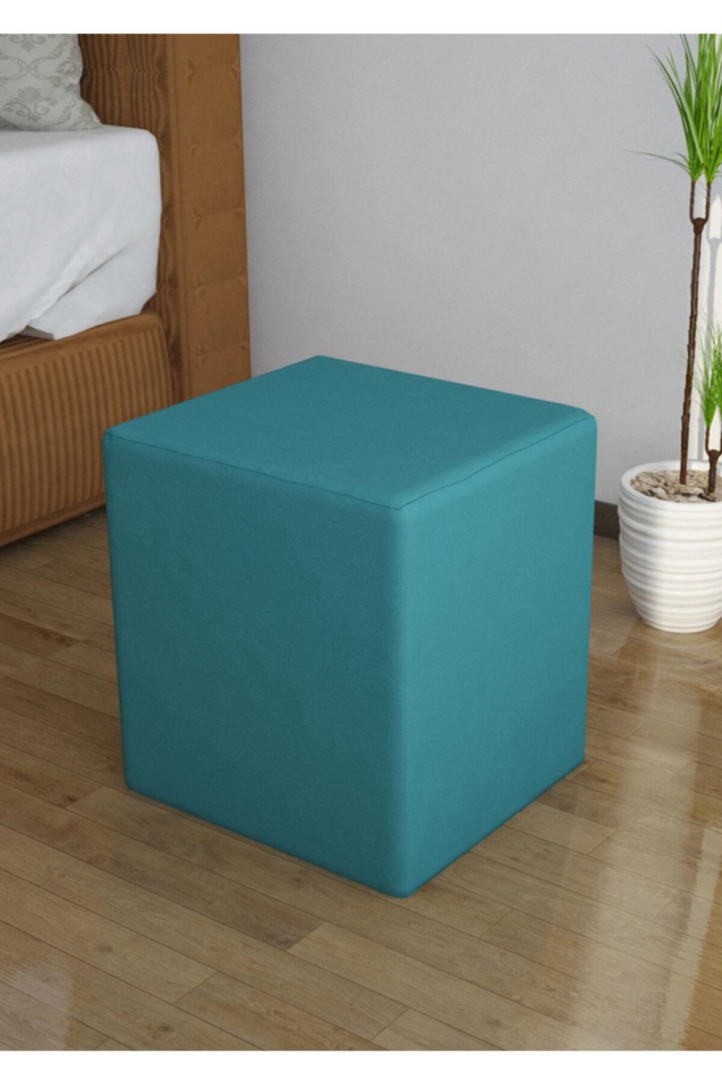 Puf Kare Tabure Kare Puf Ahşap Iskeletli Kadifemsi Kumaşlı Tabure Şık