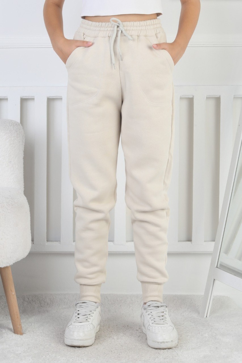 Şardonlu 3 İplik Düz Kız Çocuk Eşofman Altı