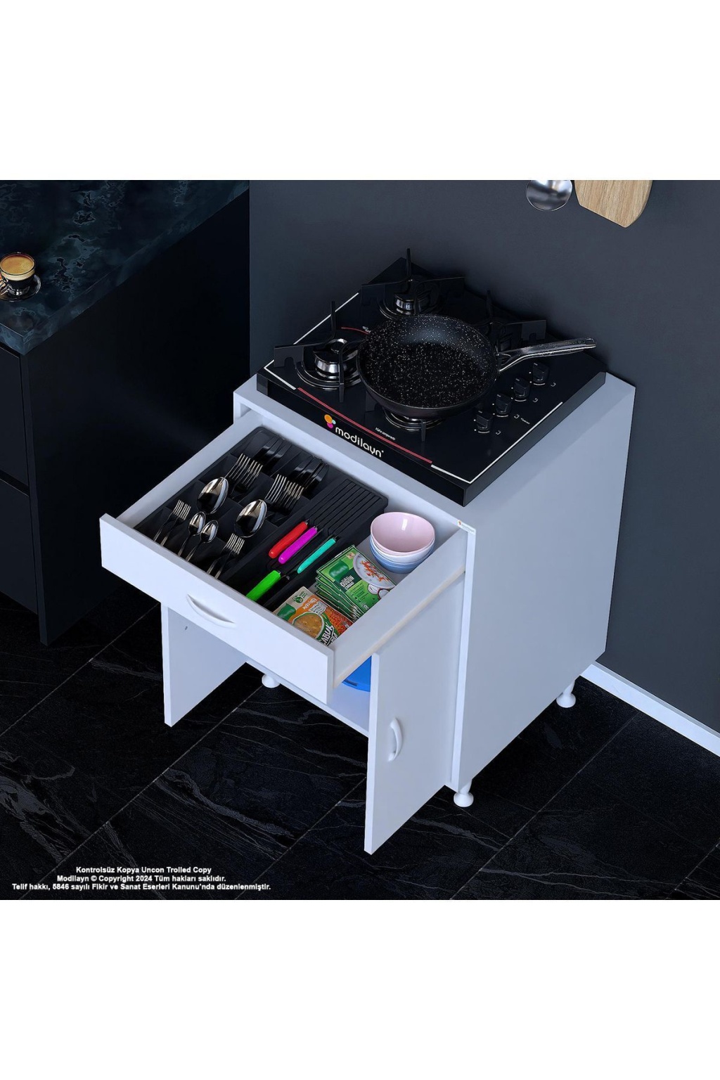 Set Altı Dolap İki Kapaklı Mutfak Dolabı Tüp Dolabı Ocak Altı Dolap