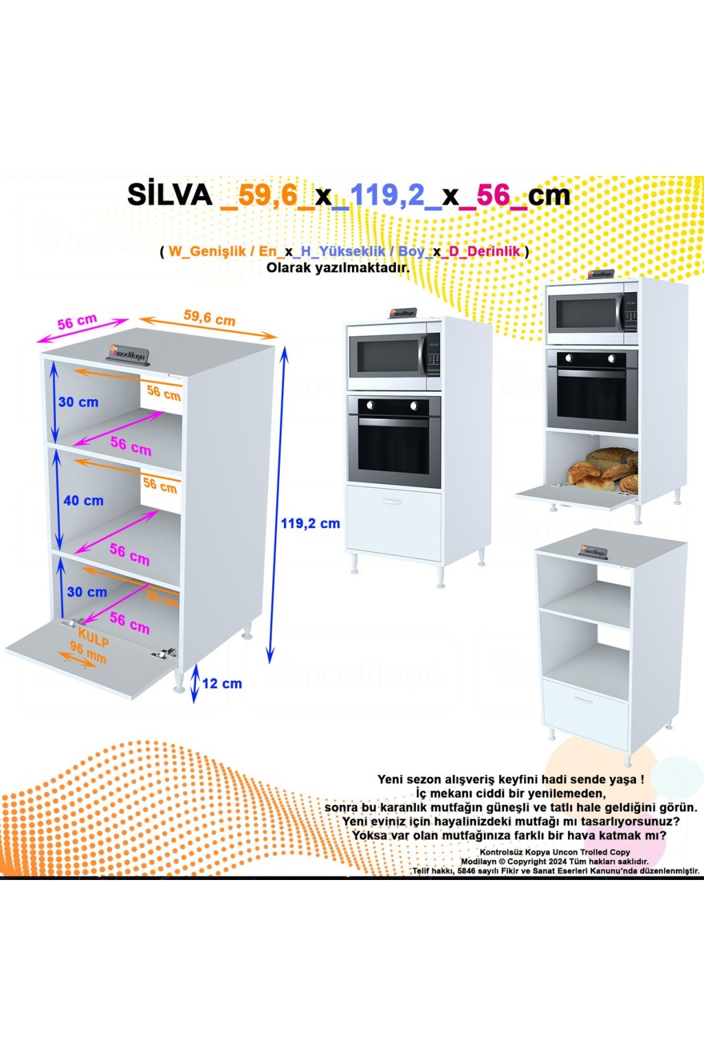 Silva Silva 4 Kapak 59,6 x 226,4 x 56 cm 6 Derin Göz Raf Mini Mikrodalga Fırın Dolabı Mutfak Dolabı