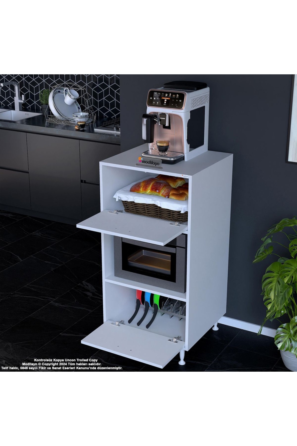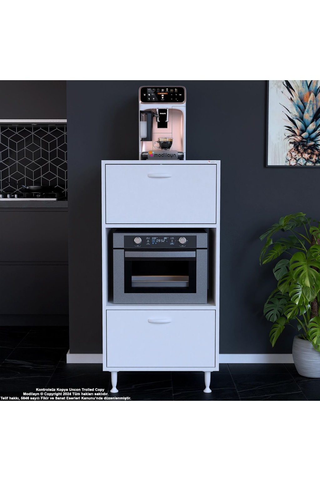 Silva 1 Kapaklı 59,6 x 119,2 x 56 cm Mini Fırın Mikrodalga Fırın Dolabı Çok Amaçlı Mutfak Dolabı