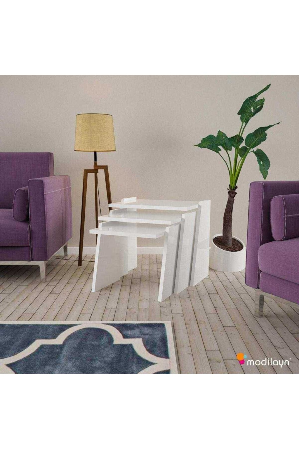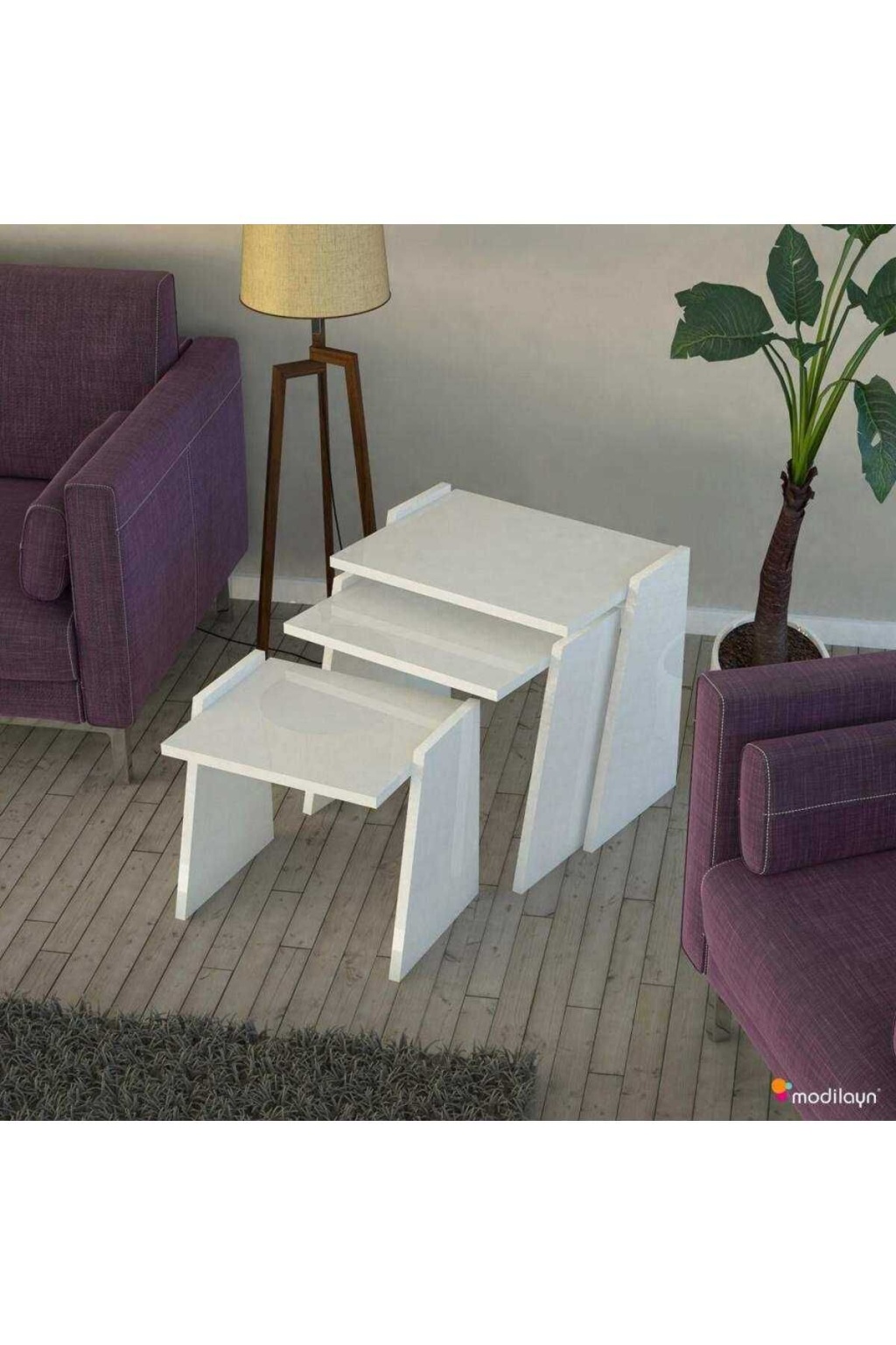 Viva Zigon Sehpa Takımı High Gloss -beyaz