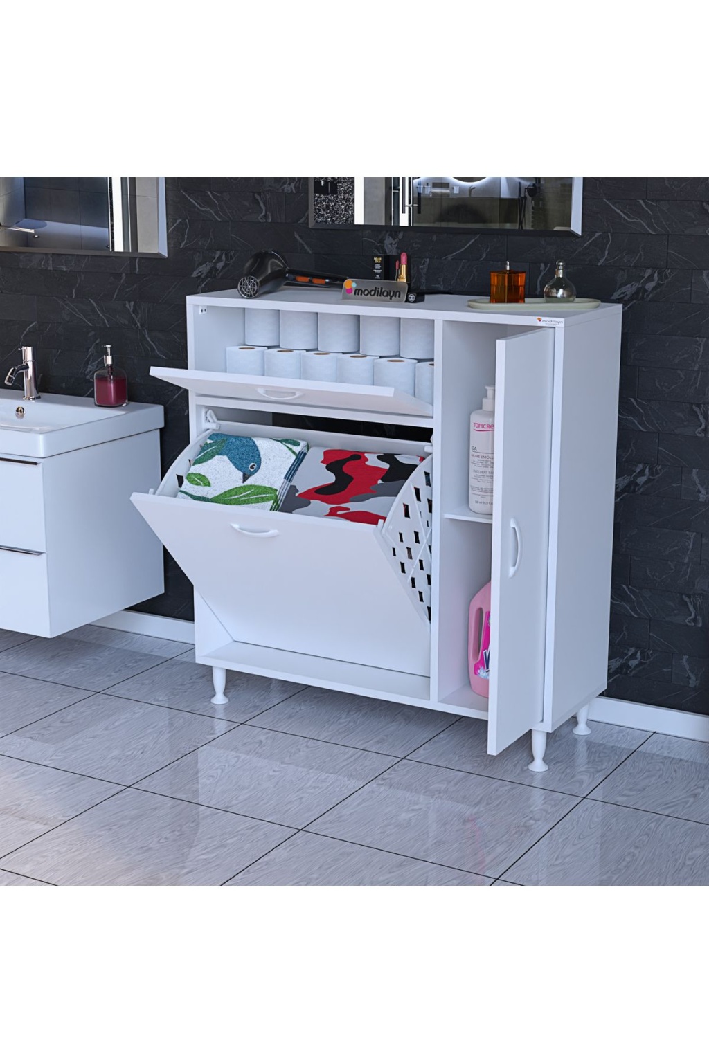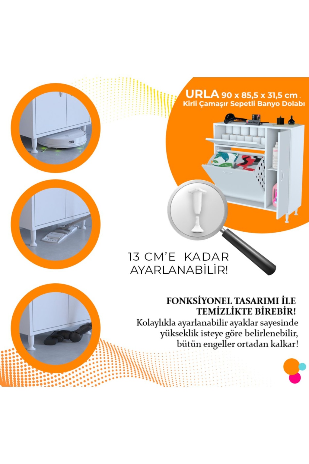 Mis URLA YENİCE Banyo Dolabı Oyuncak Dolabı Çok Amaçlı Dolap Kirli Çamaşır Sepetli Dolap